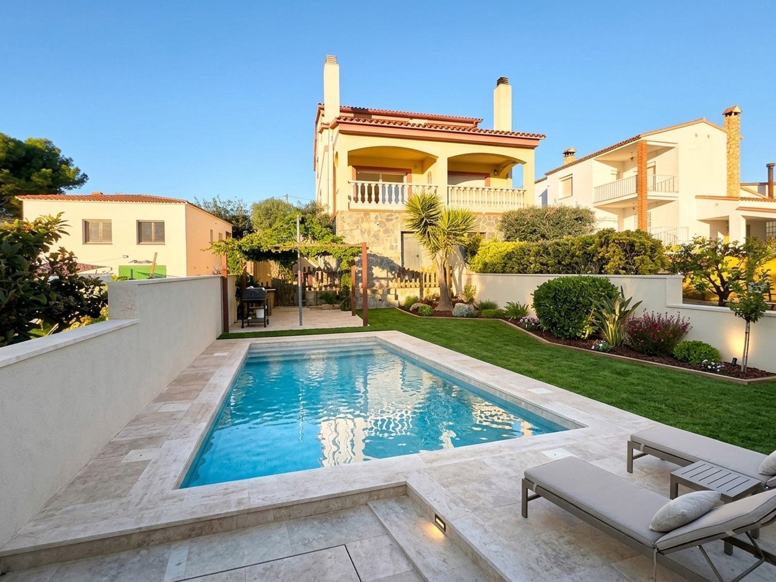 Descubre este impresionante pareado ubicado en la zona tranquila del Castell de Montornés, ideal para quienes buscan un hogar confortable cerca del mar. Con una superficie construida de 179 m² y útil de 122 m², esta propiedad se encuentra en buen estado y ofrece orientación sur, lo que garantiza luminosidad durante todo el día. El inmueble cuenta con dos habitaciones dobles amplias, una de ellas suite, y dos individuales, de ellas una es en planta junto a baño completo. También dispone de tres baños que añaden funcionalidad a los espacios familiares...La cocina es independiente, mide aproximadamente 10m² y está perfectamente equipada para disfrutar momentos inolvidables cocinando. Su salón espacioso (25m²) permite crear ambientes acogedores junto a seres queridos mientras disfruta vistas despejadas desde sus áreas exteriores como la terraza privada (8m²). ..Incluye en la planta sótano garaje para dos coches...En el exterior encontrará una parcela generosa de 265 m² con gran jardin de 60 m2 ideal para relajarse o jugar al aire libre si tiene niños pequeños gracias a las zonas infantiles cercanas dentro urbanización bien mantenida..Además entre sus extras destacan parking privado seguro frente puerta blindada principal ofreciendo tranquilidad total así mismo trastero adicional donde almacenar pertenencias sin preocupaciones adicionales sobre espacio disponible! Localizada solo cinco kilómetros distantes playa más próxima brindándole oportunidad aprovechar actividades recreativas marítimas locales incluyendo deportes acuáticos populares!.Idealmente conectada mediante transporte público accesible autobuses regulares hacia distintos puntos clave alrededor área: colegios reconocidos centros comerciales variados opciones diversión familiar aseguran satisfacción completa residencia soñadora.