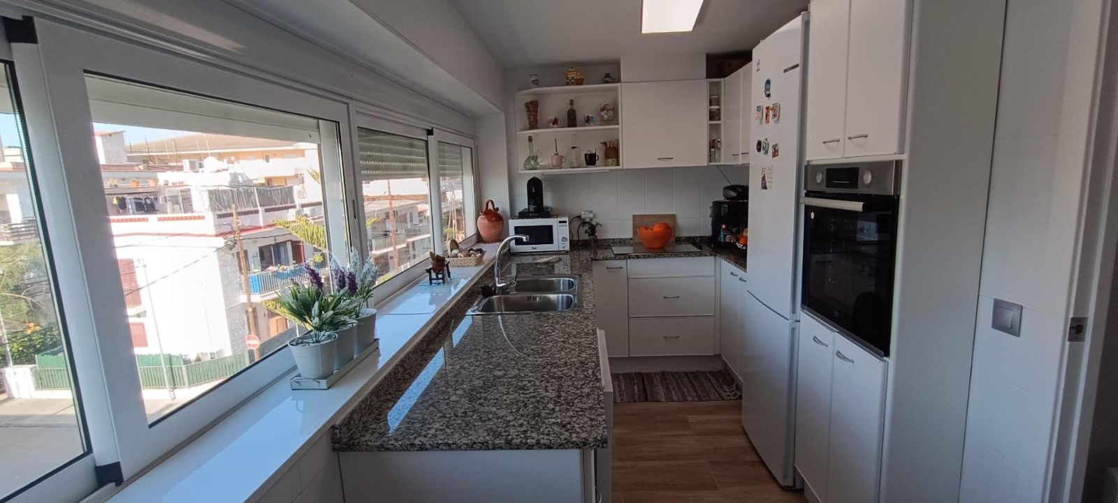 Dispone de una cocina independiente de 9 m², desde la que podrás disfrutar de inmejorables vistas al mar mientras cocinas, totalmente equipada y muy luminosa.