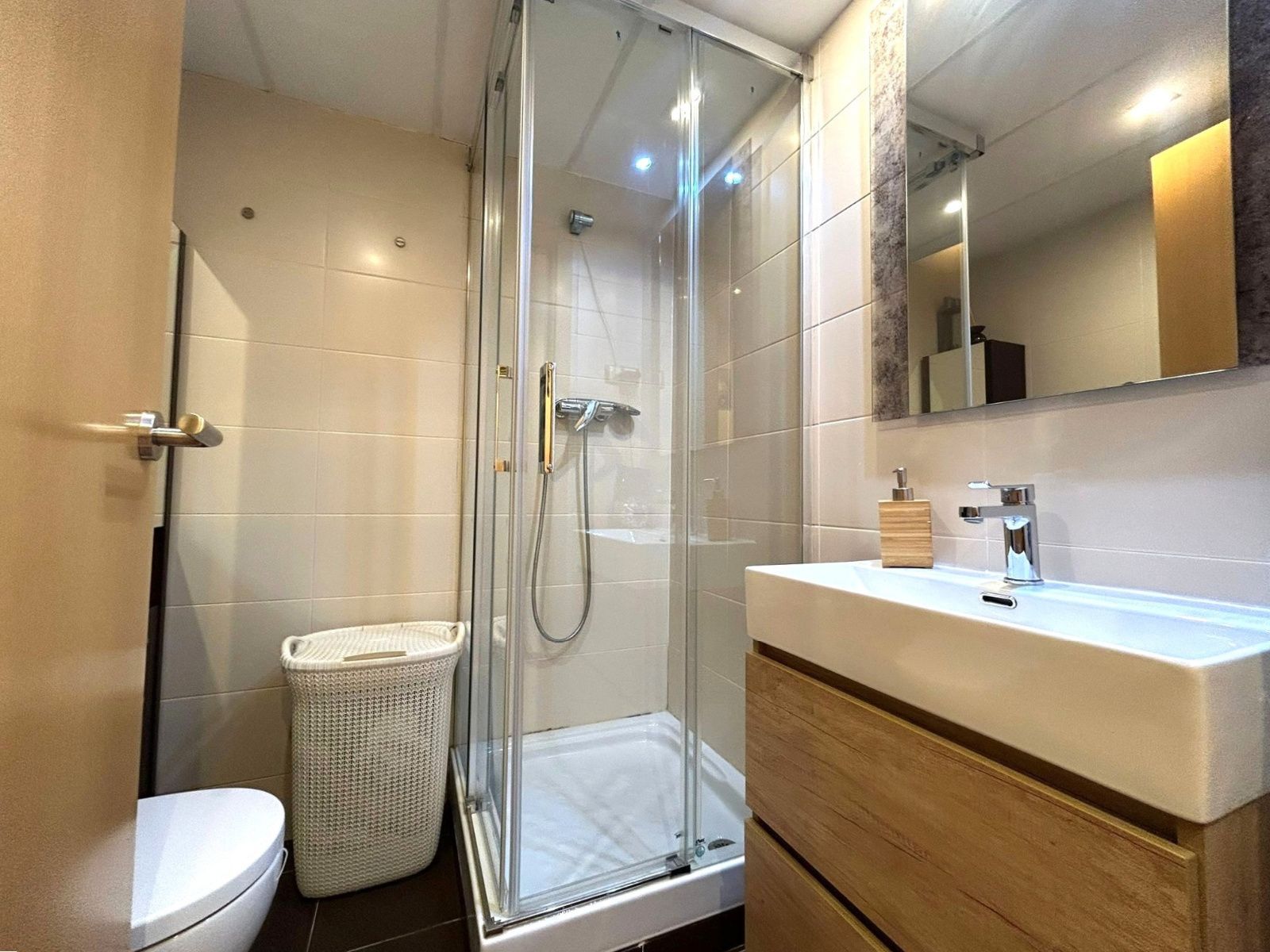 La vivienda cuenta con 2 amplias habitaciones, 2 baños completos, y un acogedor salón-comedor muy luminoso con salida directa a una agradable terraza, perfecta para disfrutar del clima mediterráneo. La cocina, moderna y funcional, se integra perfectamente en el conjunto del piso.